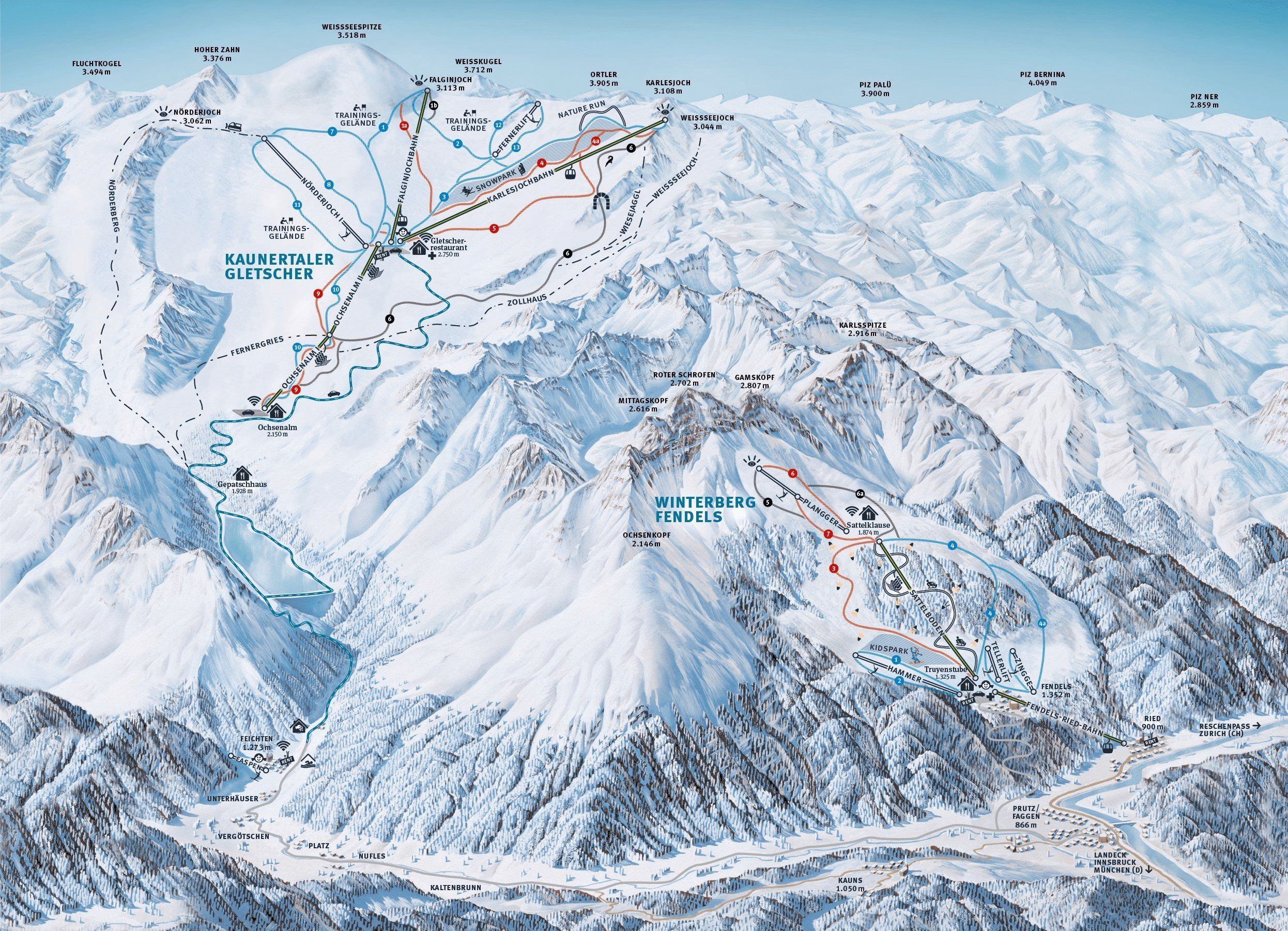 | Hoogste punt | 3.113 m | Blauwe pistes | 21 km |